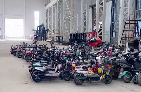 龍門剪在對報廢電動車架進行剪切